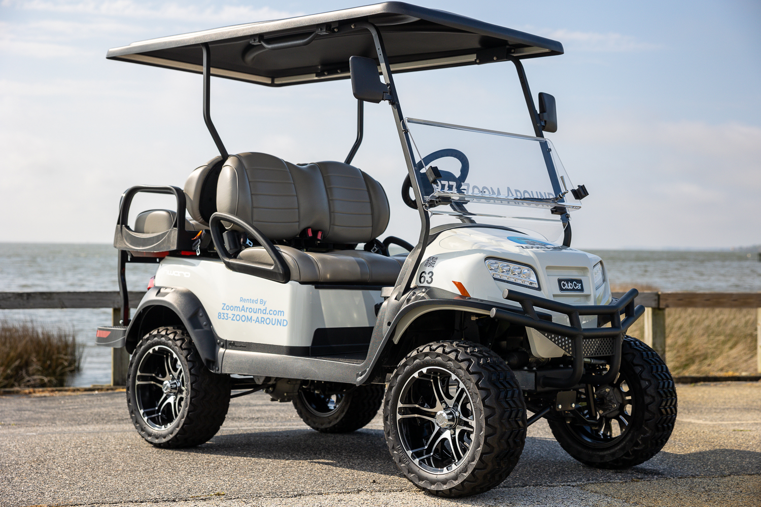 ZoomAround offers golf cart rentals throughout the Outer Banks in areas such as Corolla, Duck, Southern Shores, Kitty Hawk, & Nags Head. We offer daily and weekly rates with 4 and 6 seater options. All of our golf carts are street legal and come equipped with safety equipment such as seatbelts, headlights, tail lights, side view mirrors and more. Each of our carts are equipped with the latest lithium battery technology to ensure long range driving around the Outer Banks. Please be sure to wear your seatbelts.